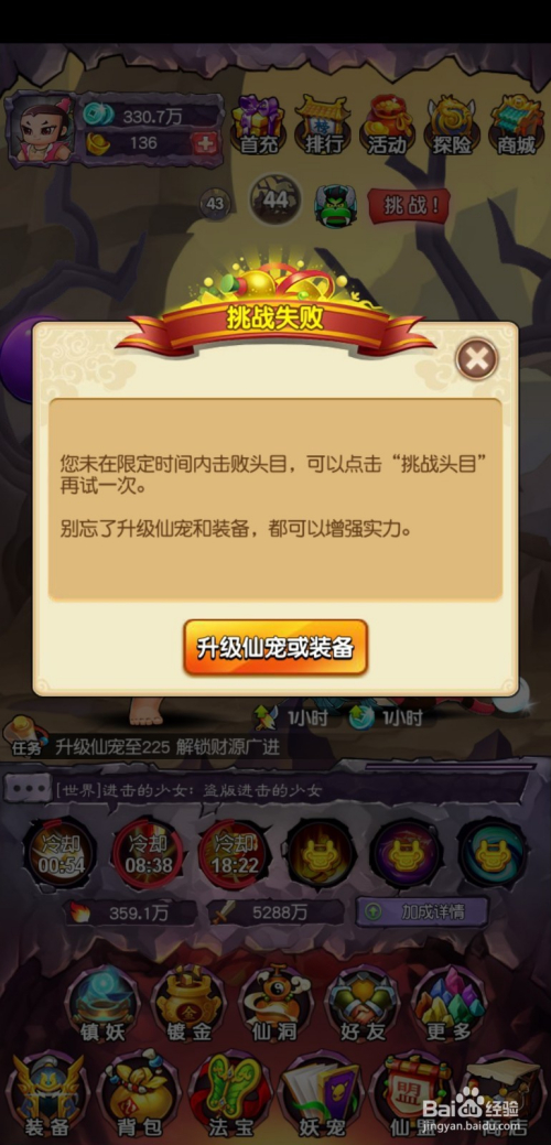 若是在划定的时候内没有覆灭boss,系统会主动为玩家退回到上一层关卡进行刷怪。直到玩家手动点击挑战boss!