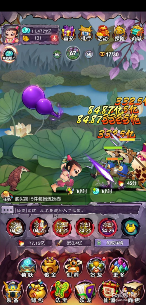 新葫芦娃手游是一条目放置类手机游戏,这条目游戏可以说是休闲游戏了。游戏在弄法上并没有任何的难度,玩家需要一层一层的覆灭仇敌获得铜币来进级和采办装备晋升本身的进犯力!
