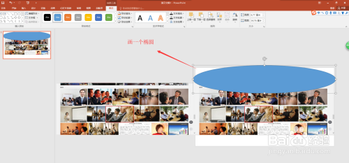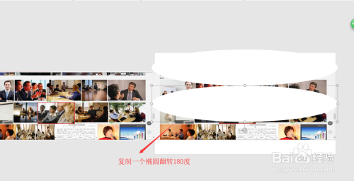 在选中椭圆,按住Ctrl键在复制一个椭圆出来,将复制的椭圆扭转180度;并将扭转后的椭圆移到照片下方位置摆好。