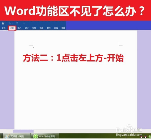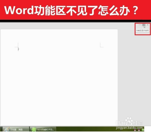 方式一:打开word,1点击文档右上偏向,箭头朝上的图标,即【功能区显示选项】。