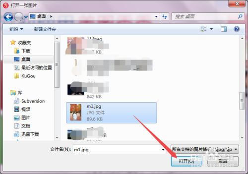 然后在打开的 打开一张图 窗口页面中找到需要添加水印的图片,点击 打开。