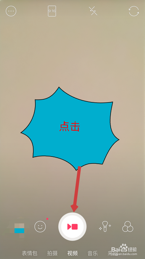 点击视频后,点击底部中心的红色摄像头图标。如图所示