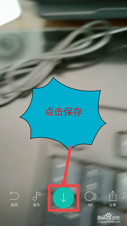 布景音乐添加完当作后,返回视频预览界面,点击底部中心的绿色布景箭头保留视频。如图所示