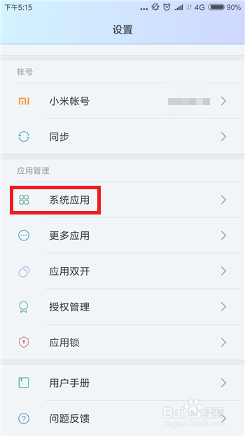 在设置功能界面中找到【应用办理】下方的【系统应用】选项并点击该选项。