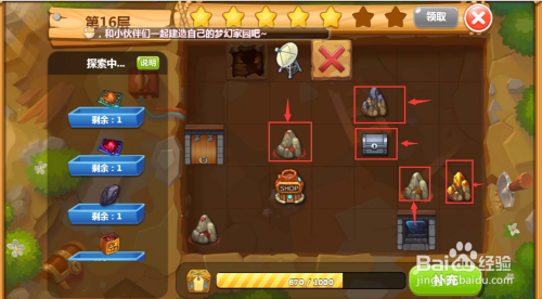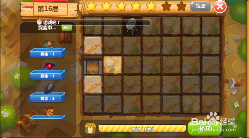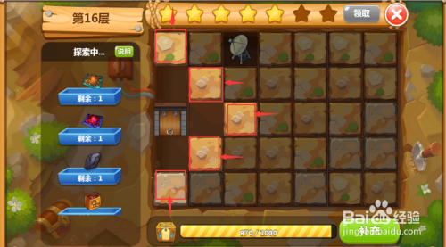 用该东西在矿石上点一下,就开采出对应的宝物,同时左边显示栏里对应的这个宝物数目就酿成零了,申明开采当作功,用同样的方式将第16层所有矿石都开采完毕,探险就竣事了。
