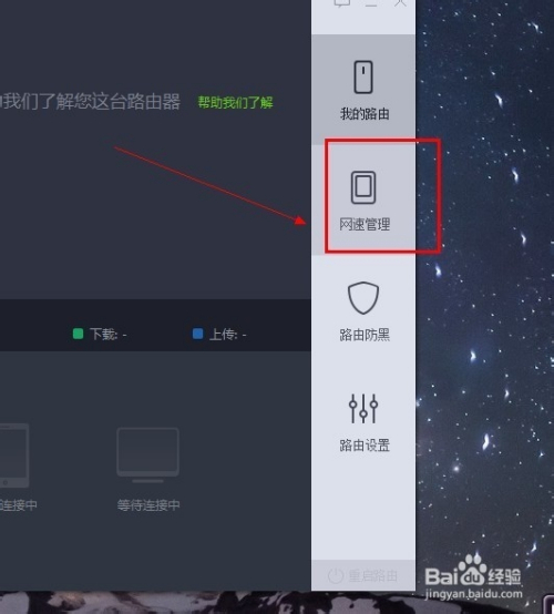 点击“网速办理”,我们便可以看到当前毗连到路由器的设备,并对其进行网速办理。