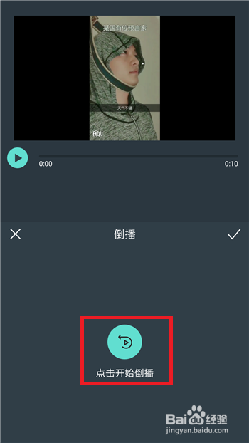 点击后会进入到倒播的编纂界面,点击屏幕中心的【点击起头倒播】选项。