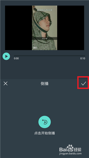等视频倒播处置完今后在倒播处置界面中点击【√】选项。