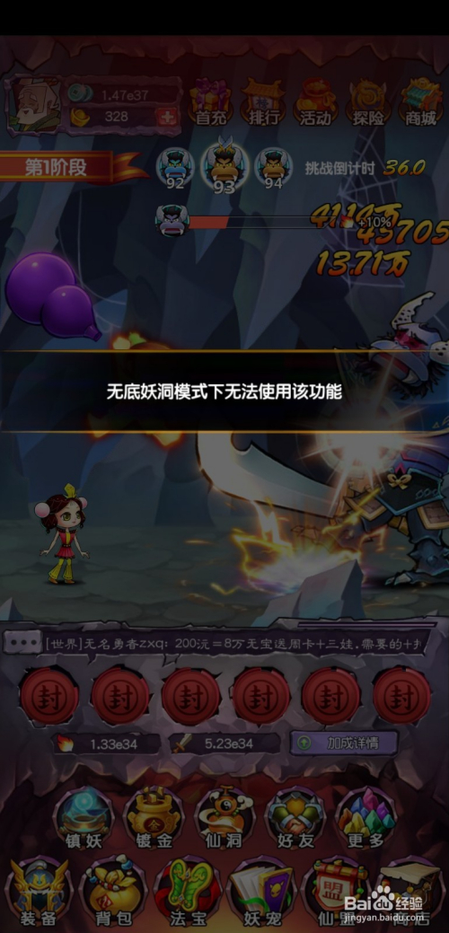 在战斗的时辰,玩家只能利用仙宠和葫芦娃的技术对boss进行输出。而且boss是无间断的呈现的!
