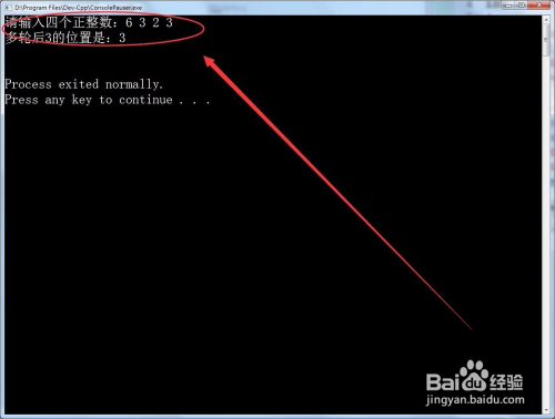 运行法式后,输入4个整数,电脑就管帐算出最后人地点的圆桌位置。