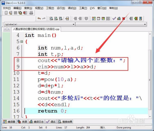 输入4个整型变量的值,保留在变量num、l、a、d中。