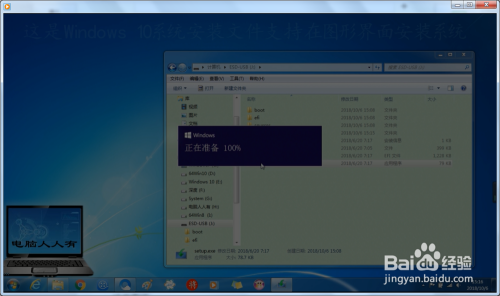 这是从微软官网直接下载的易升东西,建造的u盘(涵盖Windows 10操作系统安装文件),从现有的Windows 7 操作系统的图形界面中安装,十分便利。