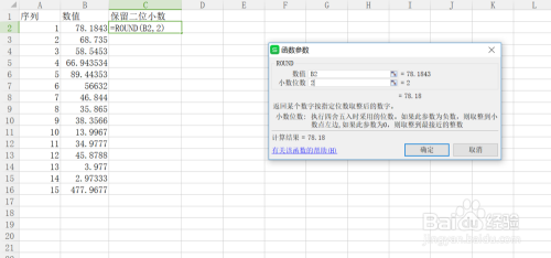 点击确定后,也能获得保留2位小数的值。