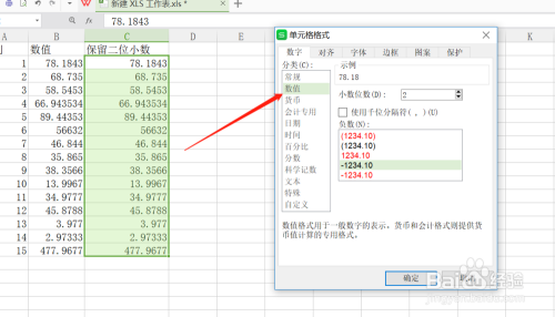 在单位格格局点击“数值”,小数位数填入2;