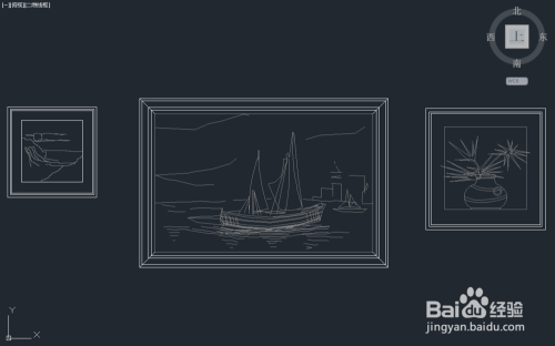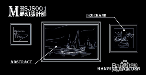 谙练的运用【直线】、【多段线】、【样条曲线】、【矩形】等东西,我们可以绘制出各类各样的挂画,最后,按键盘【B】键写当作块后保留即可。