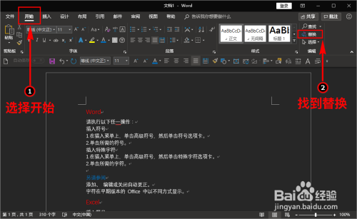 确认好之后,我们可以先选中那些不异的要替代的文字内容中的此中一个,然后在顶部的菜单栏找到“起头”菜单,然后在其子菜单中再找到“替代”,或者直接按下键盘上的“Ctrl+H”组合快捷键。