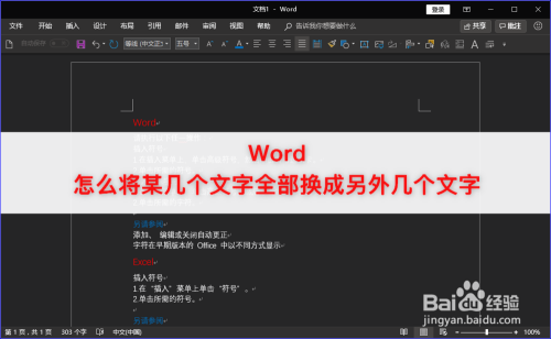 - 对word文档中的不异文字内容更改为其它不异文字内容,可以利用“替代”来完当作;