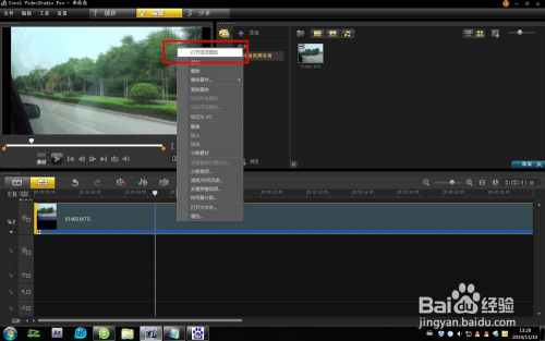 把我们需要编纂的素材,拖拽到时候线上的视频轨道上。在视频上点击鼠标右键,选择最上端的号令——打开选项面板。