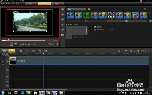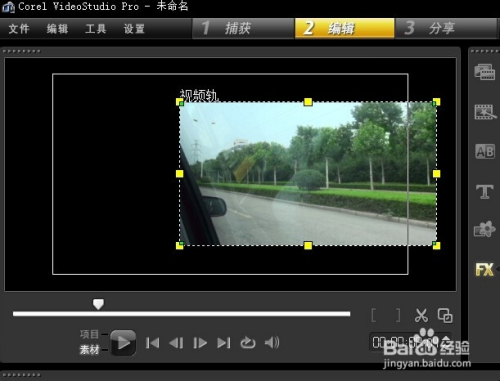 点击选中“变形”,在视频的周围就呈现了可以节制的边框。