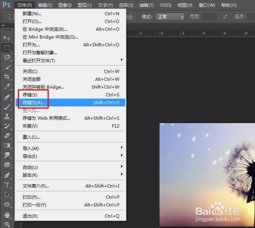第八步:在菜单栏“文件”中选择“存储”或者“存储为”,完当作操作。