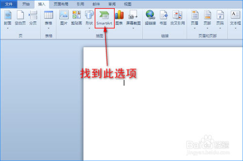 打开Word软件,点击“插入”菜单,在其子菜单中找到“SmartArt"图标。如图所示: