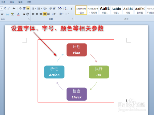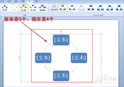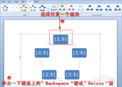 总所周知PDCA轮回是有四个过程的,可是文档中图形有5个版块,故我们需删除此中一个版块。选中肆意一个版块,然后单击一下键盘上的”Backspace“键或”Delete“键,如许版块就删除了。如图所示: