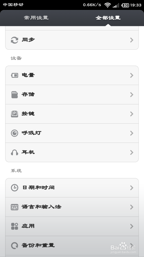接下来进入系统的全数设置界面,然后点击进入“按键”设置。