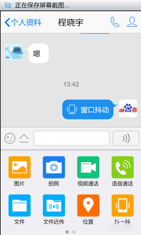 在功能页面中,我们会看到一个“抖一抖”选项,是以我们点击“抖一抖”按钮,就可以给老友发送窗口发抖动静啦。