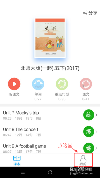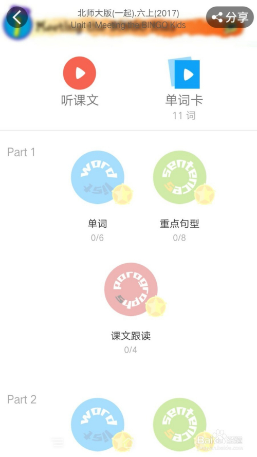 打开“小飞机英语”,此时是当前正在进修的讲义。