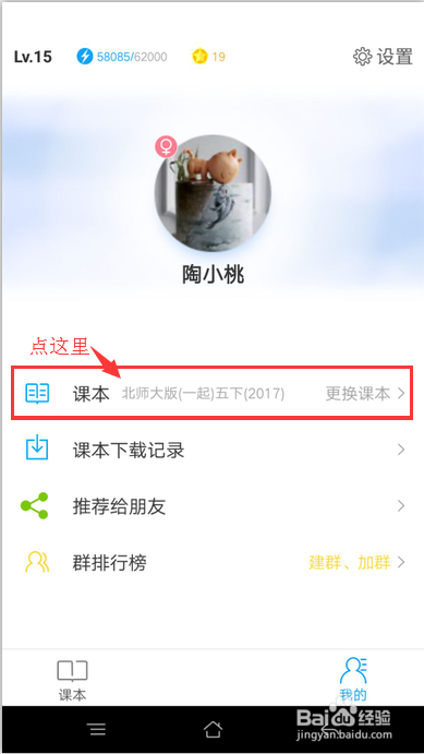 点击中心“课文”这一横排,其右侧是改换讲义。