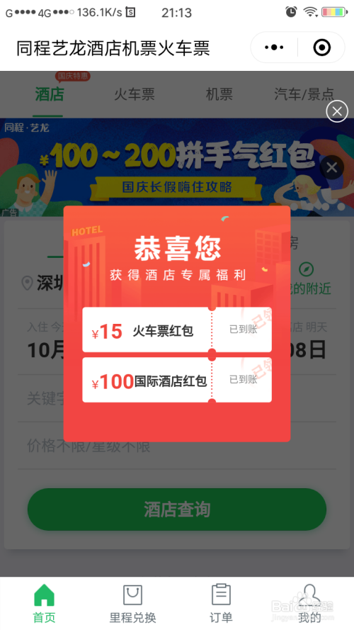 - 同城艺龙酒店机票火车票 应用