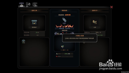 将东西和引子放上去,再投资本,其实资本就是你建造装备的种类,可以自行选择,所费材料并不多。