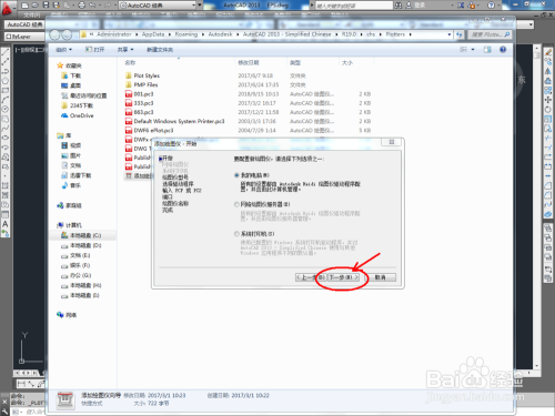 点击【打印】-【办理画图仪】,弹出窗口后双击【添加画图仪标的目的导】。弹出添加画图仪-起头后,点击【下一步】-【下一步】;
