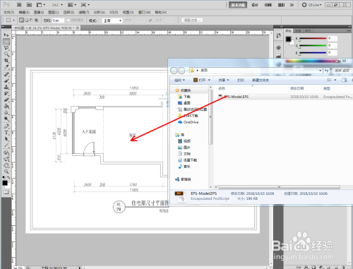 打开Photoshop(CS5)软件,将保留好的EPS文件拉入,即可进行后期编纂。