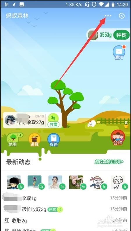在蚂蚁丛林的首页我们可以看到最上面有 `````的标识表记标帜,这里选择点击右上角的该按钮