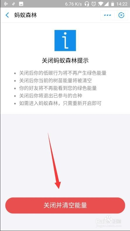 弹窗会穿线封闭提醒,提醒你封闭后需要注重哪些环境,若是考虑清晰请点击下面的封闭并清空能量按钮