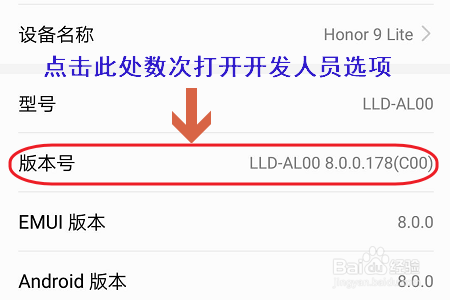 点击之后我们会看到关于手机的一些根基信息,我们持续点击此中的“版本号”,年夜约需要点击六七下,如许就能开启开辟人员选项功能了;