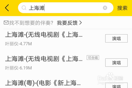 当然若是这里面没有本身想要演唱的歌曲,那就在页面最上方的搜索框输入歌曲名或者歌手名,好比小编输入经典老歌“上海滩”,见图二;