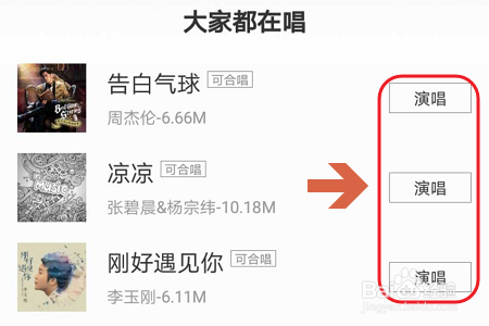 系统会为我们供给很是丰硕的热点歌曲,我们直接勾选每首歌曲后面的“演唱”就行;