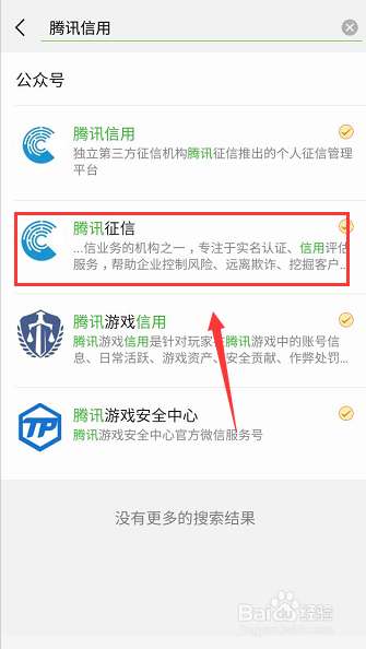 添加界面输入腾讯信用,点击搜刮,选择公家号,如下图所示
