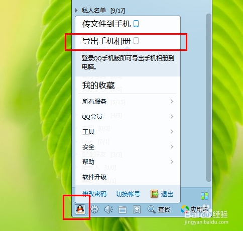 QQ版本全数更新完毕之后,我们就要起头接下来的步调啦。首先,点击PC QQ版本界面左下角的企鹅图标,然后点击选择进入“导出手机相册”。