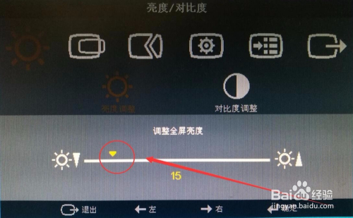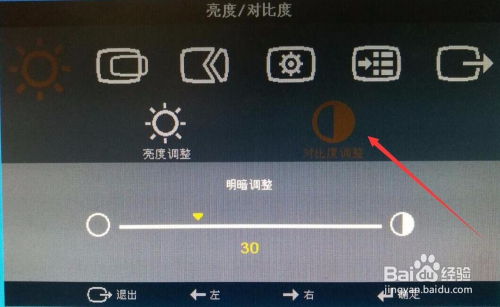 按下退出按钮,返回上一级菜单,选择对比度调整选项。