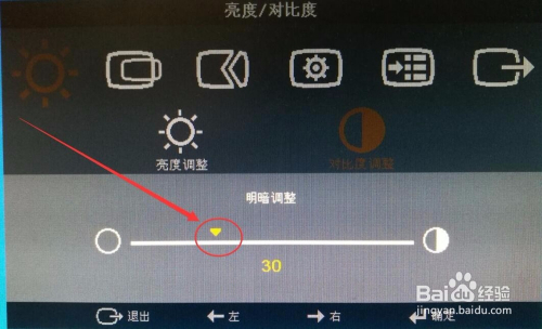 用摆布键改变明暗调整选项的滑块,标的目的左对比度变弱即变暗,标的目的右对比度变强即变亮。