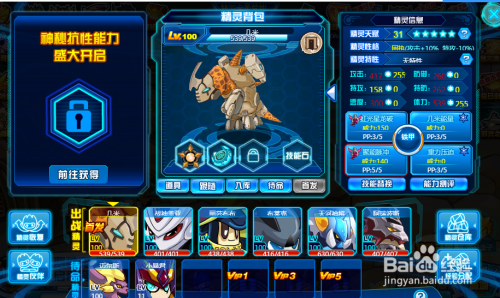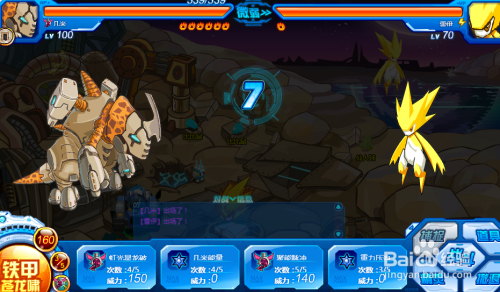 点击雷伊选择机械龙系几米,挑战雷伊先点几米能量晋升全属性再点击160危险的铁甲苍龙啸。