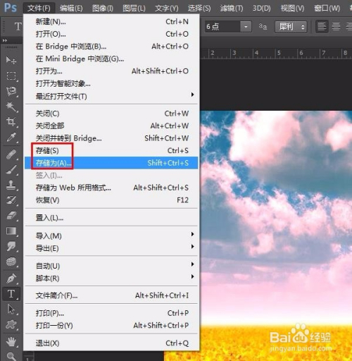 第一步:打开PS软件,在菜单栏“文件”中选择“打开”。