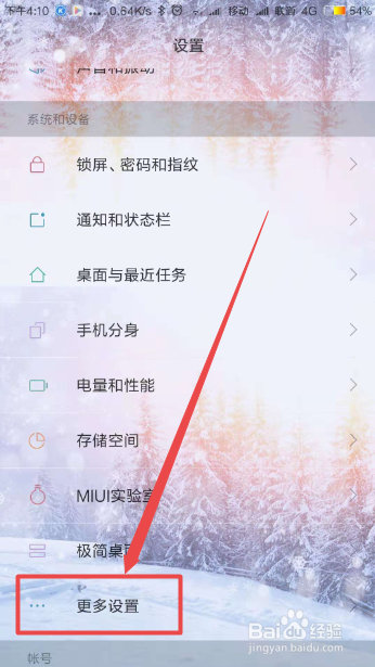 在打开的设置页面中找到 更多设置 选项,然后点击它。