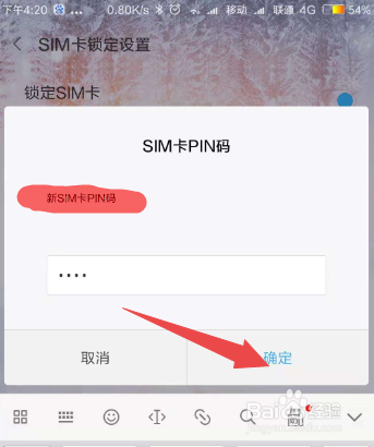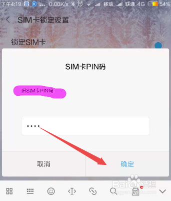 然后点击下面的 更改SIM的PIN码 选项;在弹出的页面中输入旧的PIM码,然后输入新的 SIM卡的PIN码,点击确定,然后再次输入,如许就可觉得SIM的PIN设置密码了。