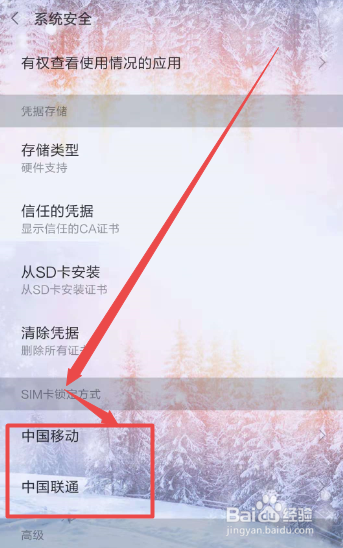 然后在打开的系统平安页面中找到 SIM卡锁定体例 选项,在打开的下面可以看到当前手机的SIM卡,按照需要选择。