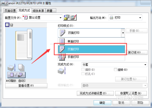 来到下一个页面,我们在点击【打印样式】下的【双面打印】,再点击【确定】