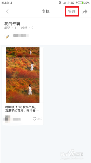 进入到保藏笔记地点的专辑后,在右上角的位置处找到【办理】选项并点击。